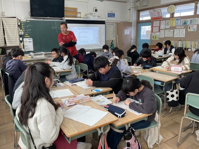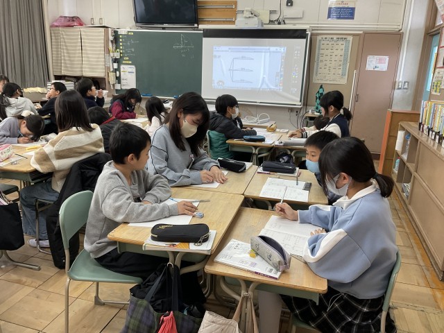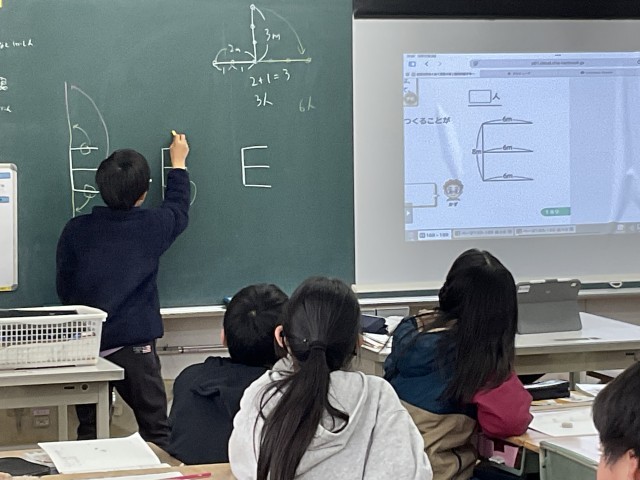 1メートルごとに並んで人文字をつくります。何人でつくることができるかな?