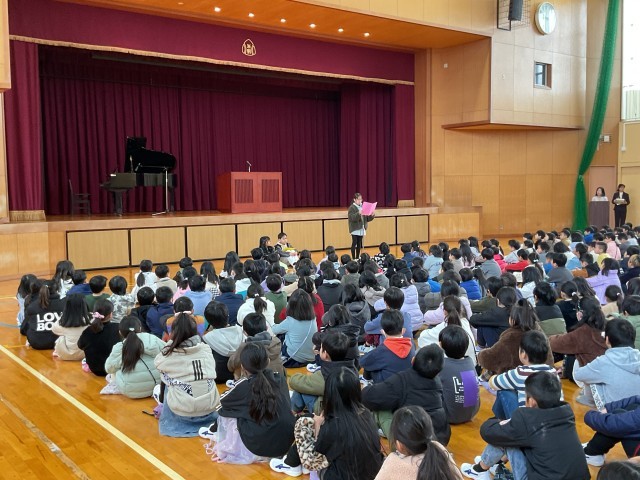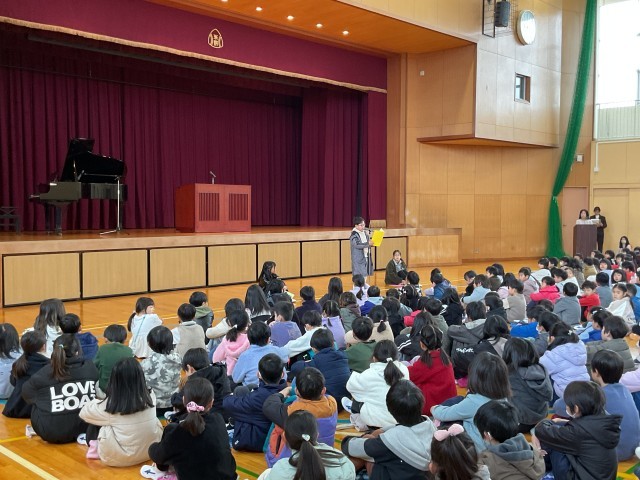 いよいよ2026年がスタートしました。元気な歌声に始まり、代表児童による3学期の抱負がありました。米野小学校の代表として活躍した児童の表彰も行いました。校長講話では「目標をもって生活をすれば何事もうまくいきます。『やってみよう』という気持ちを大切に」という話がありました。保護者、地域の皆様、今年もよろしくお願いいたします。