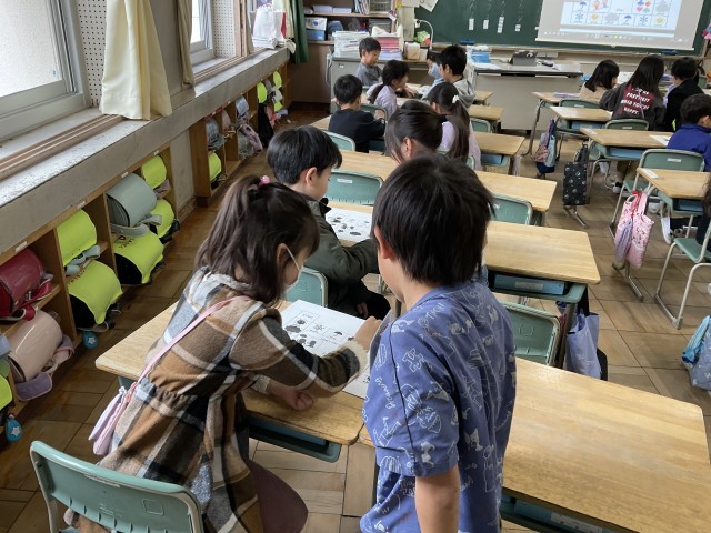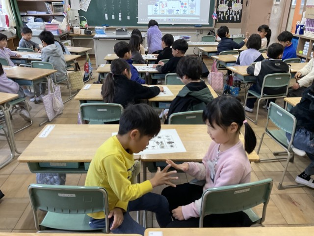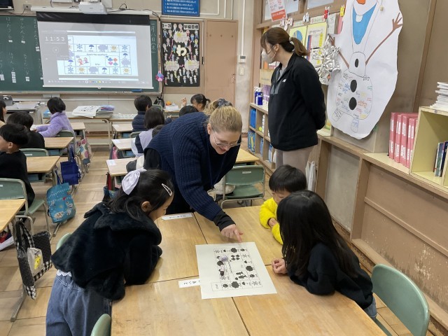 英語を使って、天気の勉強をしました。英語の歌やゲームも教えてもらいました。