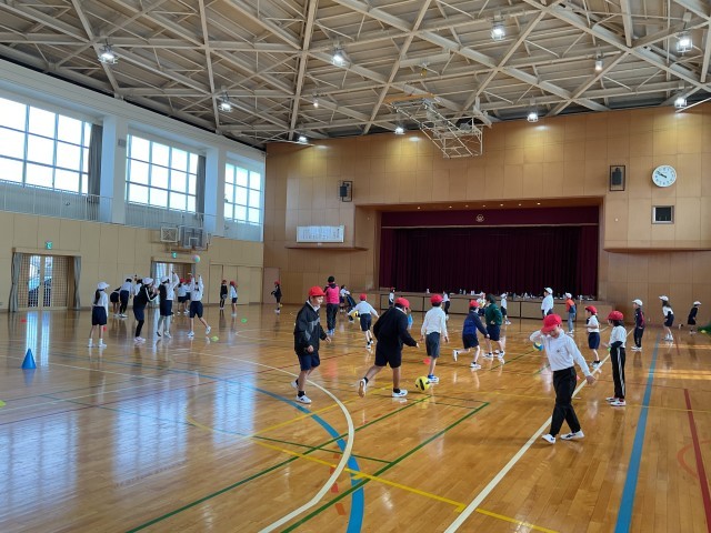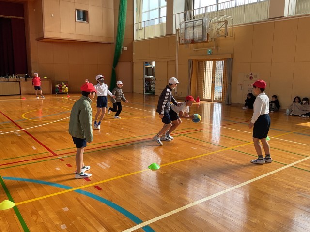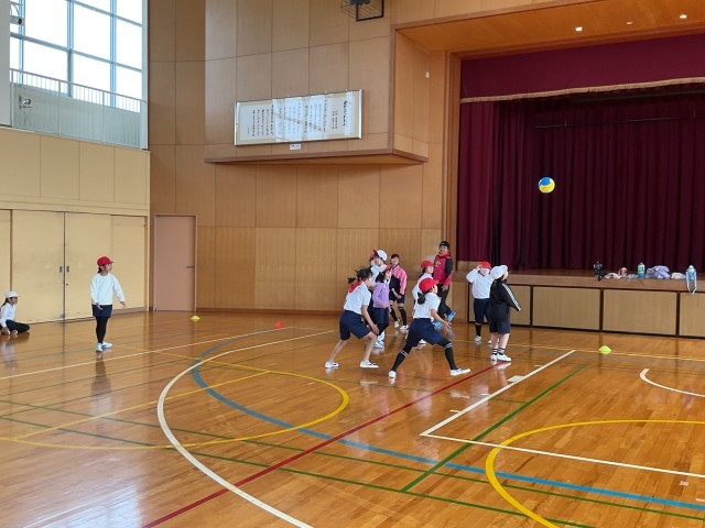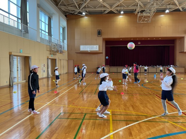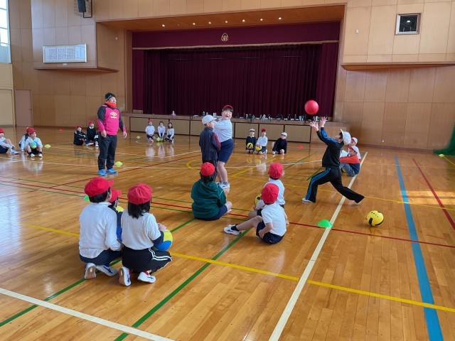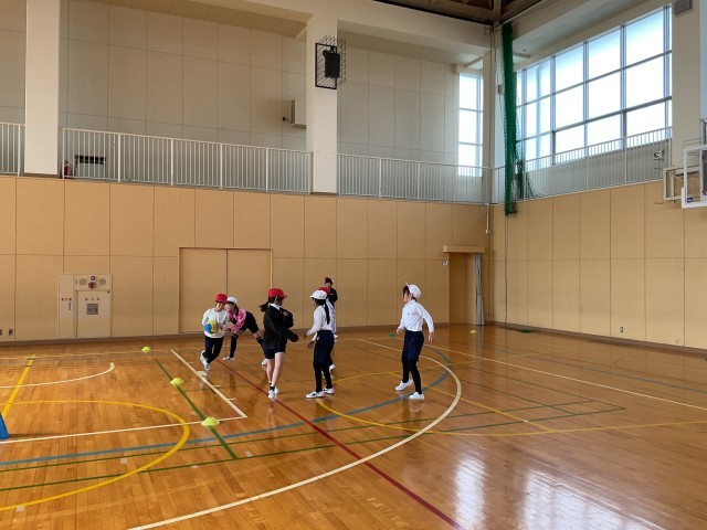 今年度、最後のコーディネーション体育を行いました。最初にボールを投げ合い、キャッチする練習をしました。そして、簡単なルールを教えてもらい、試合をしました。1点を取るためにどのようにすれば良いか考え、チームメイトに声をかけながら楽しそうに活動していました。