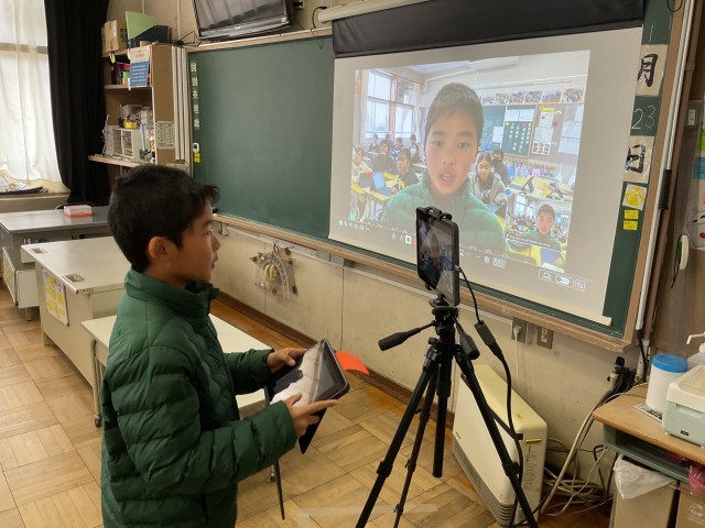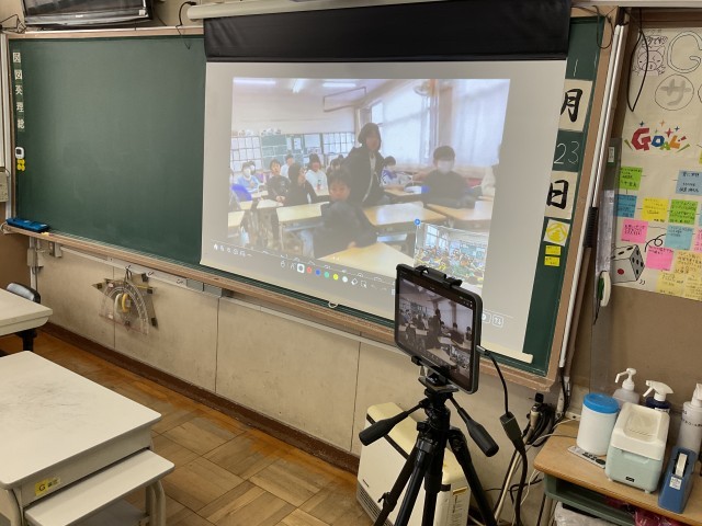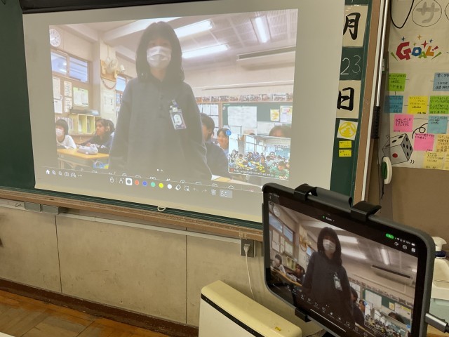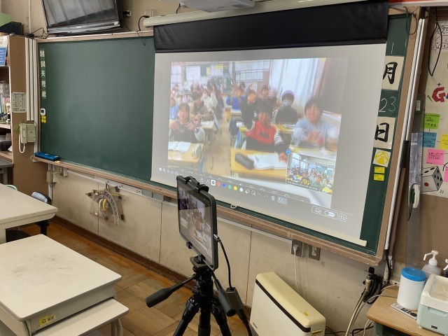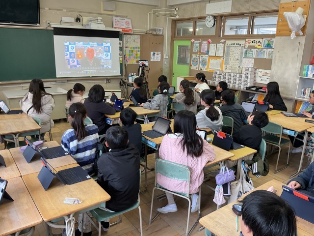 社会科の学習として、日本の北端の島々の様子について、色丹島に住んでいた方のお話を聞きました。根室市と米野小学校をオンラインで結んで、戦争前の島での生活の様子や、戦後島を追われて別の島に移った苦労などについて教えていただきました。その後、クラスごとに質疑応答をし、現在はそれらの島々に自由に行き来できないことを知りました。