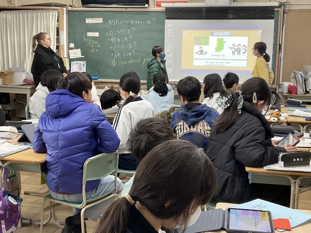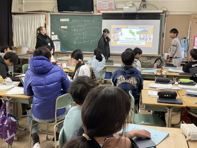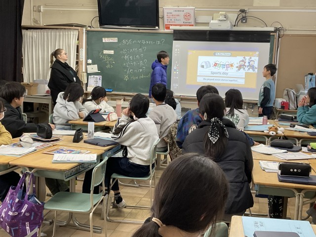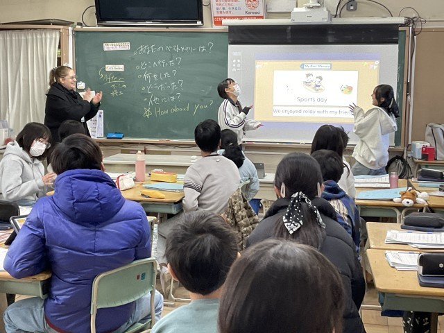英語を使って、友達と会話を楽しみました。運動会、修学旅行、音楽会など小学校生活の一番の思い出を伝え合いました。