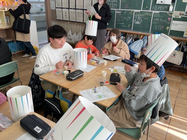 フランス料理店「シェシュシュ」の清水さんをお招きして、味覚のアトリエを行いました。日ごろ使われている調味料や清涼飲料水には、安価に提供するため多くの食品添加物が使われていることを知ったり、出汁を味わいながらどんな材料が使われているかを、真剣に考えたりしました。 最後には、ブラマンジェのデザートを頂きました。美味しくて少しずつ味わって食べている姿が印象的でした。 お忙しい中、貴重な体験をさせていただきありがとうございました。