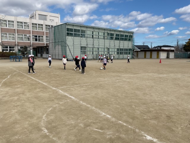 今日は運動場でサッカーボールを使って体を動かしました。ただボールを蹴るのではなく、止めたり、パスの相手を探したりと考えることがたくさんあります。