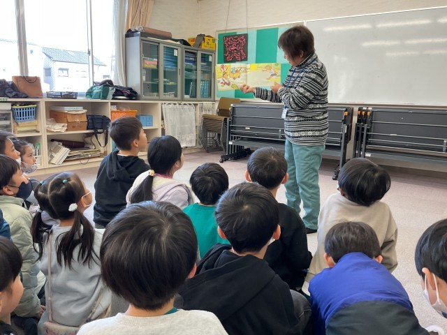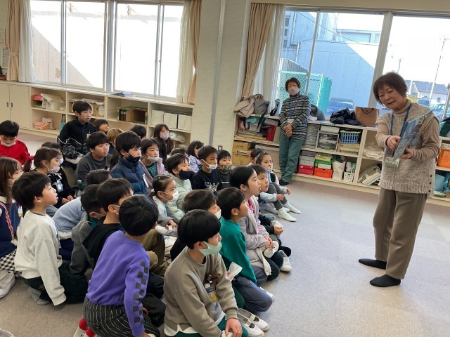 今日の「びっくりばこ」さんの読み聞かせは「だれのパンツ」と「ケンカおに」でした。「パンツだって…」と題名を聞いただけで、ニコニコしてしまう子どもたち。どちらも“おに”が登場するお話でした。「節分だったからね」とつぶやいている子もいました。いつも季節に合った楽しいお話、ありがとうございます。