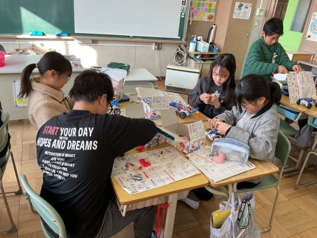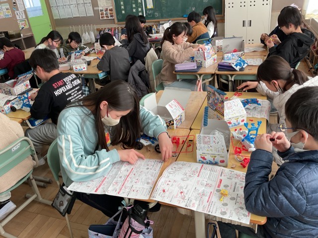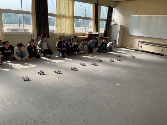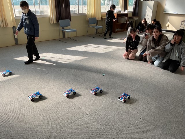 電磁石の性質を利用したモーターカーを制作し、実際に走らせてみます。同じ実験キットを使っているのにスピードが違うことに疑問が湧きます。電流の大きさ以外にも、これまでに学習したことを思い出しながらより有効に力を伝える工夫を考えます。