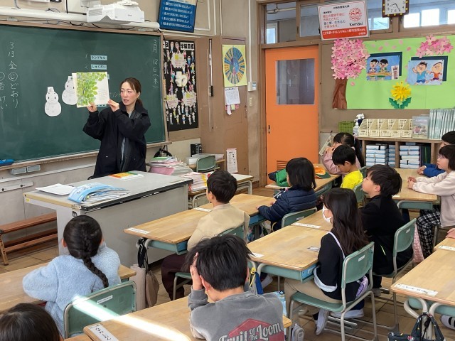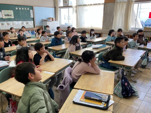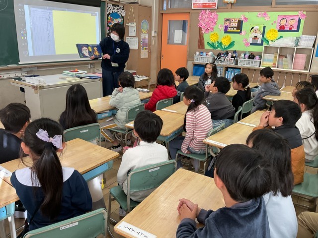 1年生の教室で、びっくりばこさんが、朝の読み聞かせを行ってくれました。今年度、最後の朝の読み聞かせです。驚いたり、笑ったり、どのクラスでも、子どもたちがお話に引き込まれていました。