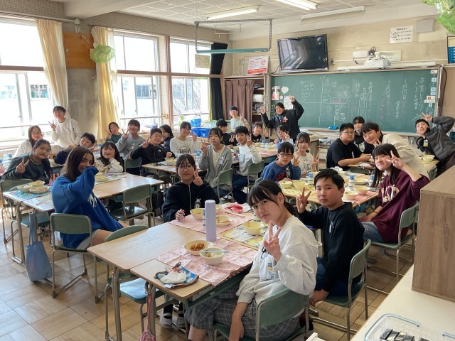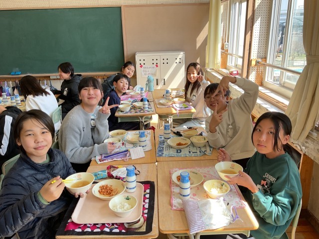 穏やかな日差しのもと、笑顔いっぱいの給食の時間でした。