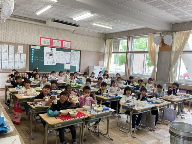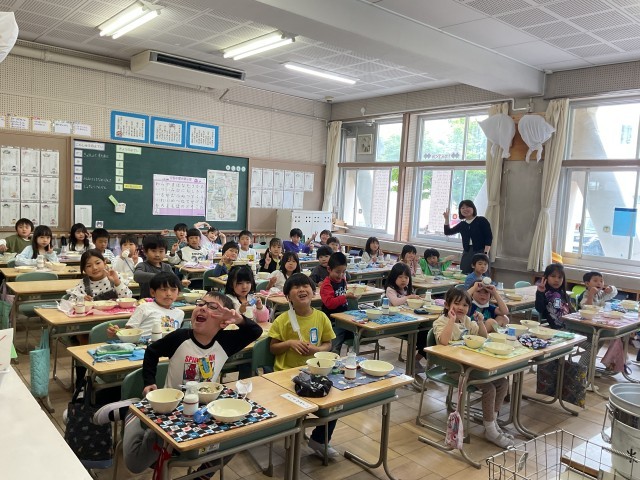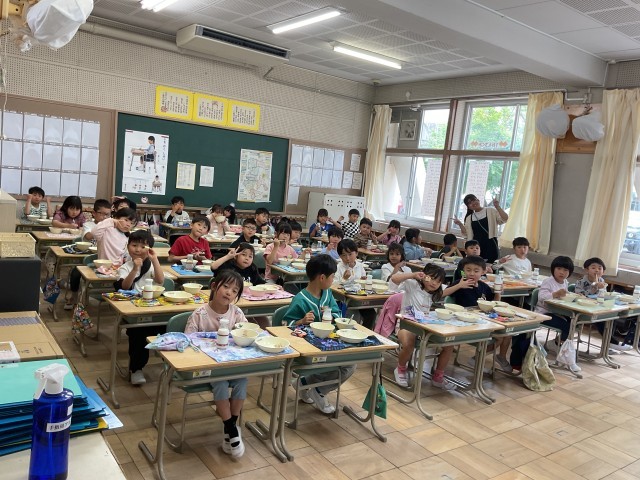 給食開始から3日目にして準備も素早くなりました。おかわりをする児童もいて給食の時間を楽しめているようでした。