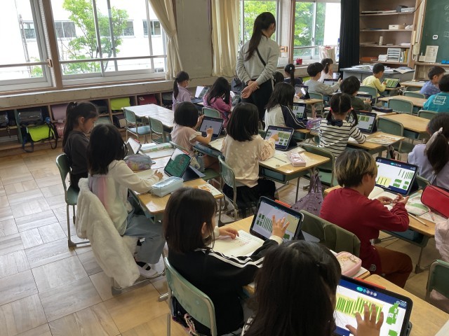 2桁ー1桁の計算を学習していました。数え棒を操作しながら、計算の仕方を考えます。ノートにもしっかり計算式や答えを書いています。