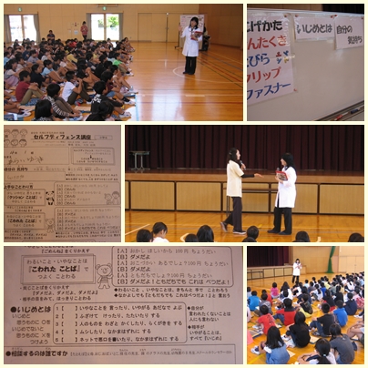 本日、スクールソーシャルワーカーの先生をお二人お招きして、セルフディフェンス講座をしていただきました。4年生は「いじめから身を守る方法」と「不審者から身を守る方法」の二つを学びました。具体的には、人からいやなことを言われたときの上手なことわり方などです。4年生の子どもたちは、講師の先生の話を真剣に聞いてメモをとっていました。
