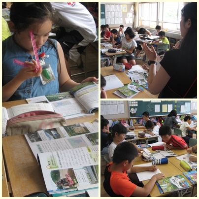5年生が、高原の気候を利用した野菜作りについて調べていました。教科書や資料集、ビデオを見ながら、高原の涼しい気候を利用して、野菜が少ない夏から秋に新鮮で安全な野菜を収穫できるように工夫していることを学んでいました。