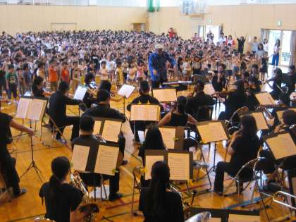 6月12日(火)米野小学校にオーケストラがやってきました。中部フィルハーモニー交響楽団の皆さんです。指揮者は、青島広志さん、テノール歌手の小野 勉さんの著名な方々もみえました。青島さんは、お話も上手いし、ピアノも演奏されました。感動的な1時間でした。中部フィルハーモニー交響楽団の皆さん、本当にありがとうございました。