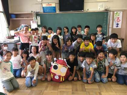 5年4組の級訓(学級目標)は、「だるま」です。級訓の「だるま」には、児童一人一人の目標が書かれています。目標を達成するまで何回転んでも、立ち上がり努力し続ける、不屈の魂を身につけるという強い願いが込められています。そして、友達が転んだときには、全員で手をさしのべ、協力して、様々な壁を乗り越えて行ける、団結力のある学級にしたいそうです。