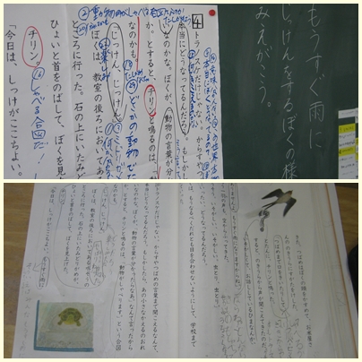今日の授業は、「第4場面、実験をするぼくの様子を読み描こう」です。子どもたちは、教科書をしっかり読み、思い描いたぼくの様子について聴き合いながら、読みを深めていました。