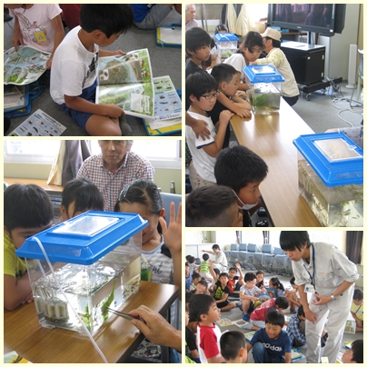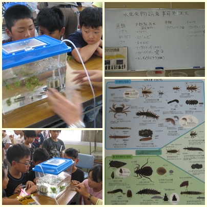 4年生が来週6月26日(火)に大山川に行って、水生生物調査をします。そのための事前学習会を講師の先生をお招きして行いました。講師の先生は、市役所の環境対策課の職員の方々と西山先生、小牧市の自然環境を守るために調査観察してみえる、小牧市自然環境観察人の皆様方です。子どもたちは、大山川でつかまえられた水生生物を見て、興味津々でした。来週がとても楽しみです。