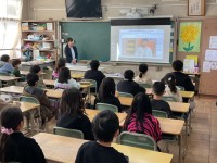 生活委員会の児童による、登校時のあいさつ運動がありました。今日は、3年生・4年生が校外学習に行く日です。今日も天気は良さそうです。
