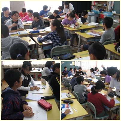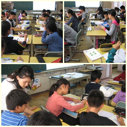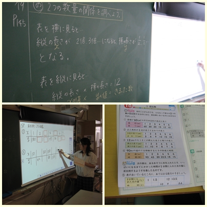 6年生が算数の授業で反比例の表からわかることを追究していました。「xの値が2倍、3倍になると2分の1、3分の1になる」「xの値×yの値がきまった数になる」です。これらの関係を使って、色々な問題を解いていました。