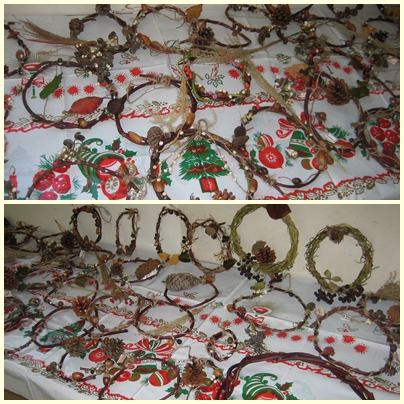 2年生はサツマイモのつるでリースを作っています。今日は、ここまでできました。まだ完成ではありません。これからリースにボンドを使って飾りをつけていきます。完成がとても楽しみです。