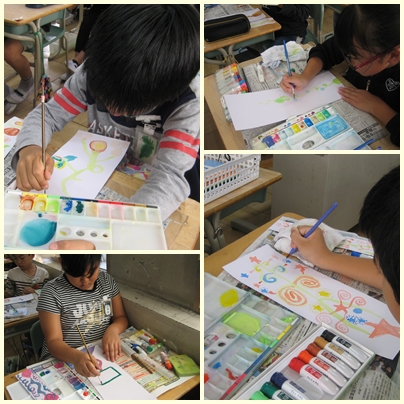 4年生が図工の授業で「まぼろしの花」を描いています。この世には存在しない、不思議な花です。
