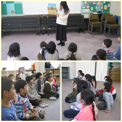 2月13日(水)20分放課、びっくりばこの皆さんによる絵本の読み聞かせがありました。子どもたちは楽しみにしていました。今日、読み聞かせしていただきました絵本は、「あな」「ぜったいあけちゃダメッ!」「もうぬげない」の3冊でした。どうもありがとうございました!