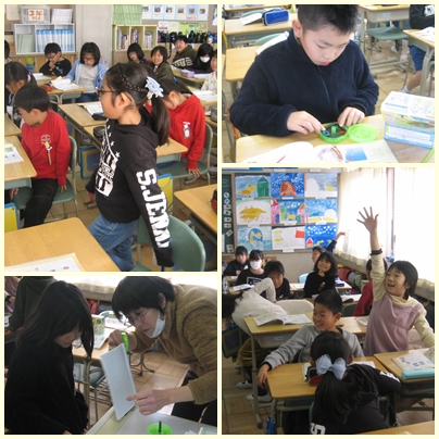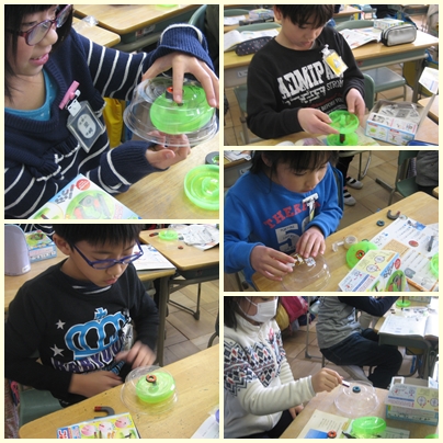 3年生が理科の授業で磁石のおもちゃを作っていました。作っていたのは、動く円盤です。