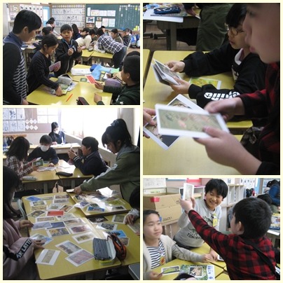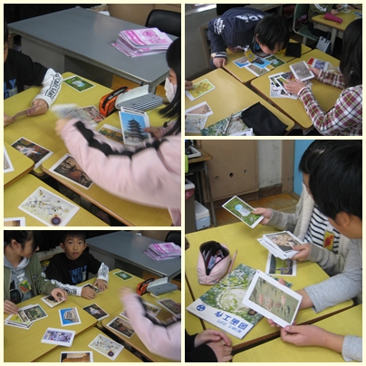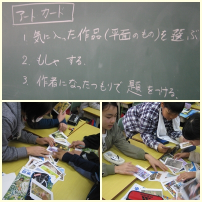 5年生が図工の授業でアートカードを使って気に入ったカードの模写をして題をつける学習をしていました。まず今日は、気に入ったカードを選びました!