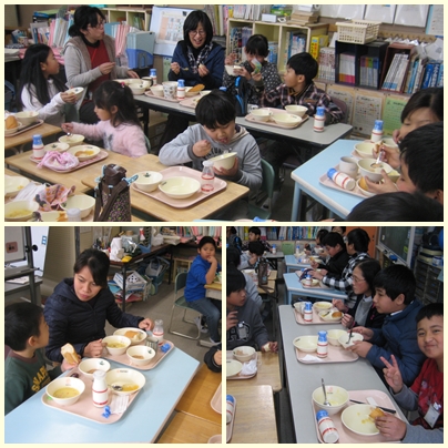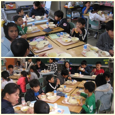 今日は、タガログ語を母国語にもつ児童が国際教室に集まり、一緒に会食する国際給食の日でした。国際の先生や語学相談員の先生とも話がはずんで楽しそうでした。