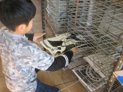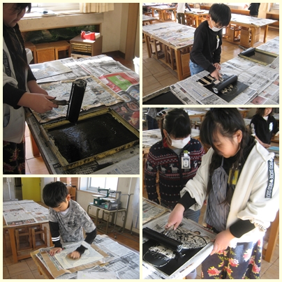 4年生が図工の授業で木版画の作品を作っています。ぞくぞく作品が完成しています。