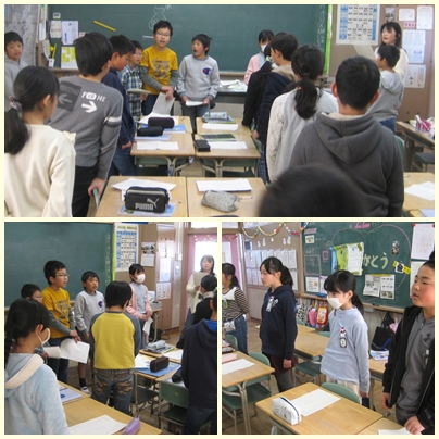 4年生が2月27日(水)の感謝の会に向けて歌の練習をしていました。成長した姿をお世話になった6年生に見てもらおうと頑張っていました。