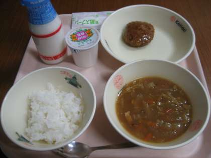 マカロニのカレースープ・ハンバーグのてりやきソース・ごはん・牛乳・蒲郡みかんゼリー
