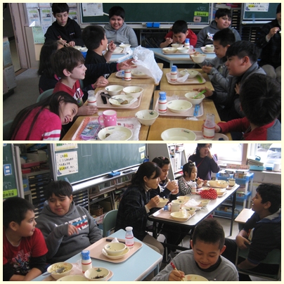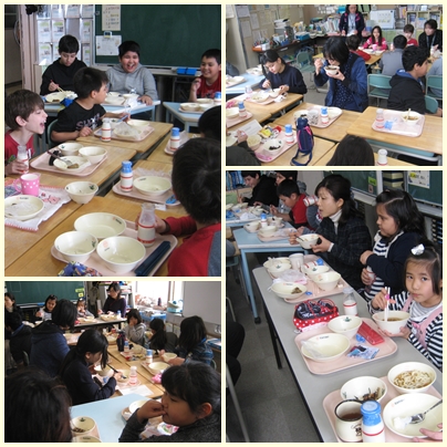 今日は、ポルトガル語を母国語にもつ児童が国際教室に集まって会食する、国際給食の日でした。会話もはずんでとても楽しそうに給食を食べていました。
