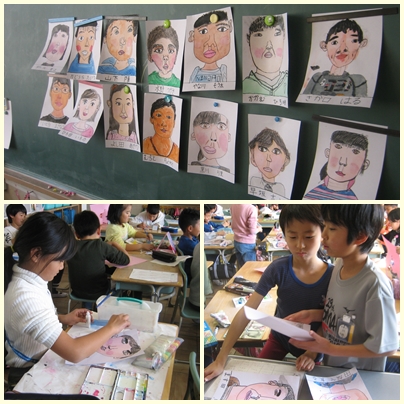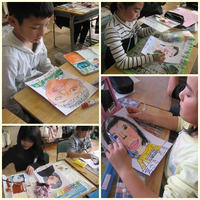 3年生が卒業式に体育館に掲示する自画像を作成していました。水彩絵の具で上手に描いていました。まだ、下書きをしている学級もあります。