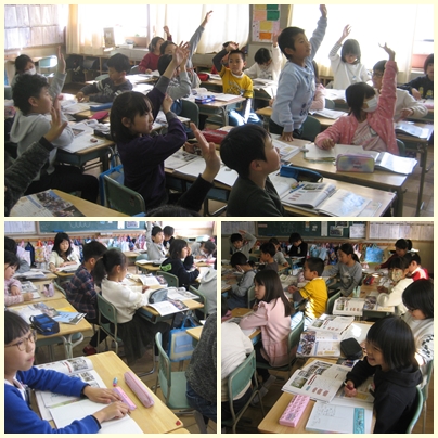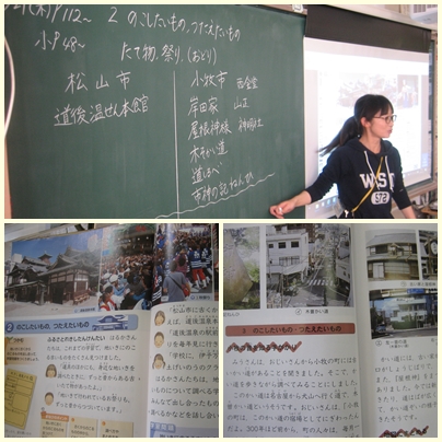 3年生が社会科の授業で残したいもの・伝えたいものの学習をしていました。松山市と小牧市を比べて調べていました。