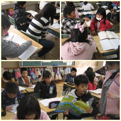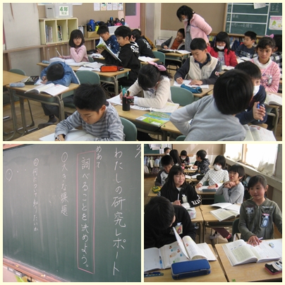4年生が国語の授業で本で調べて報告する文章を書く学習に取り組んでいました。今日は何を調べるのか決めていました。国語の教科書の例や社会科など、他の教科で調べてみたいことから課題を決めていました。