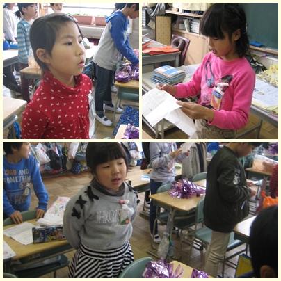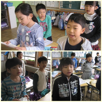 2年生が朝の会で感謝の会で全校で合唱する「ありがとう」の曲を一生懸命歌っていました。6年生に気持ちが届いたかな?