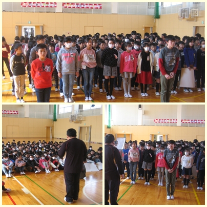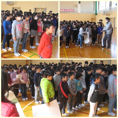 2月27日(水)5時間目の「感謝の会」に向けて今日から体育館での学年練習が始まりました。今日の4時間目は、4年生の割り当てでした。