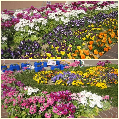 6年生が感謝の会に向けて最後の学年練習をしていました。6年間を振り返りながら、立派に成長した姿を在校生に見せてほしいと思います。PTA花壇の草花も6年生の卒業を祝うかのように満開です!
