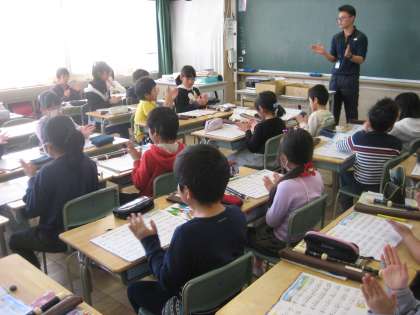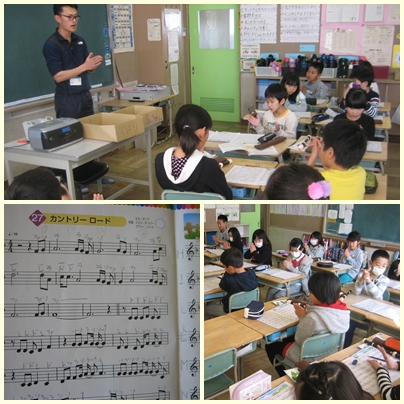 3年生が音楽の授業で「カントリーロード」の曲を手拍子をしながらリズムやテンポをつかんでいました。これからリコーダーで演奏していきます。テンポの速い曲なので難しそうです。