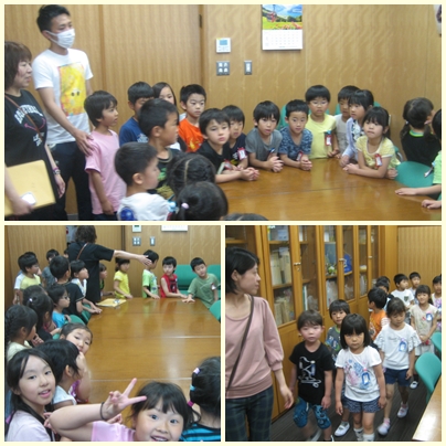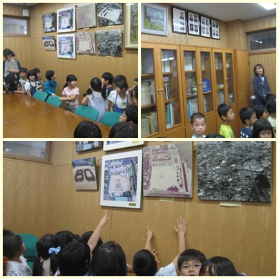 1年生が生活科の授業で学校探検をしました。校長室の中も1年生の児童が探検していきました。壁にかかっている航空写真を見て、「プレハブ校舎がない」「昔は学校のまわりは田んぼばかり」「児童クラブもない」「体育館が新しくなっている」とつぶやいていました。