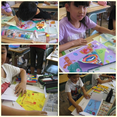 3年生が図工の授業で扉を開けると不思議な世界が広がる世界を描いていました。どの子も様々に不思議な扉を工夫していました。