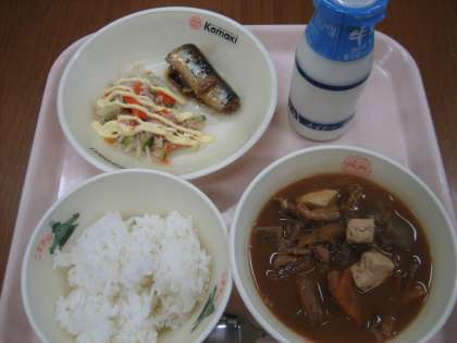 <献立> 豚汁・いわしの梅煮・切り干し大根サラダ・ごはん・牛乳