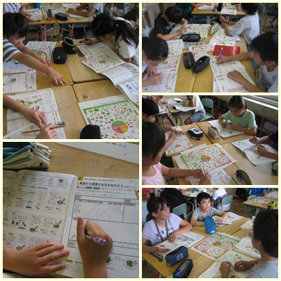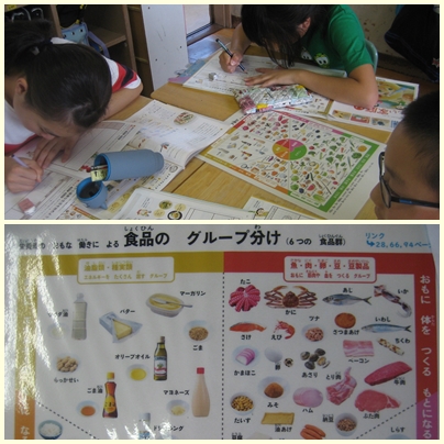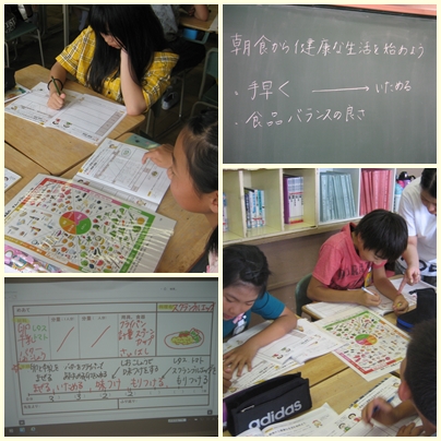 6年生が家庭科の授業で調理実習の学習を生かして、栄養のバランスのよい朝食のレシピを考えていました。