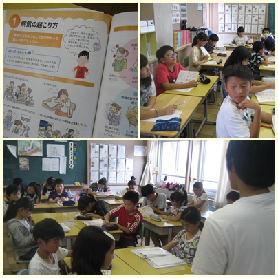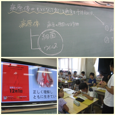 6年生が保健の学習で病気の予防について学習していました。「病原体を体の中に入れないこと」と「抵抗力をつけること」が大切であると学んでいました。