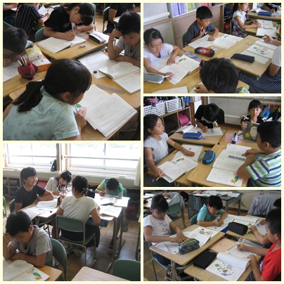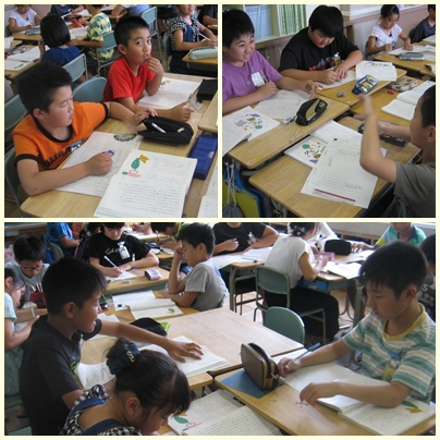 5年生が国語の授業で説明文の読み取りをしていました。段落ごとに筆者が言いたいことは何か読み取りながら、大事な語や文章を書き出していました。