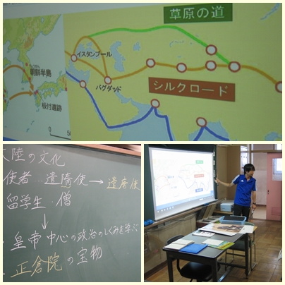 6年生が歴史の授業で東大寺の正倉院の宝物がどこでつくられたものなのか学習していました。次にだれが日本にもってきたのか調べていました。中国や西アジア、遠く西ヨーロッパでつくられたものもありました。