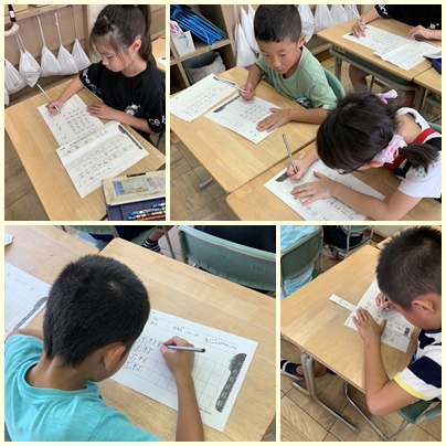2年生が明日の書写競技会に向けて、硬筆の練習を集中して行っていました!明日が楽しみです!