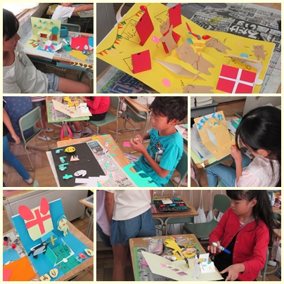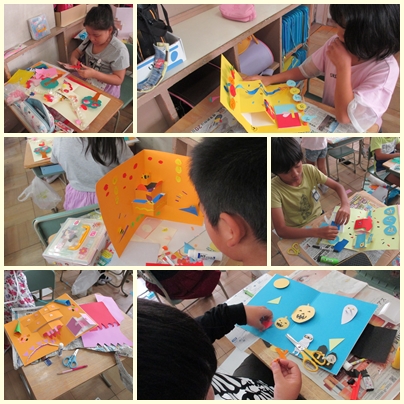 4年生は、図工競技会で「幸せを運ぶカード」を作りました。楽しいカードがたくさんできました。