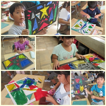 2年生は、「ひかりのプレゼント」を図工競技会で作っています。きれいな壁飾りができあがってきました!