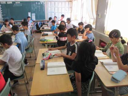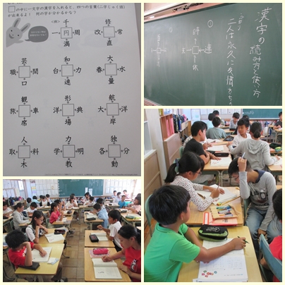 5年生が国語の授業で当てはまる漢字を入れて、4つの熟語を作っていました。1つの漢字には色々な音があります。また、特別な読み方をする言葉があります。「七夕」「今日」「時計」「上手」「二人」などです。